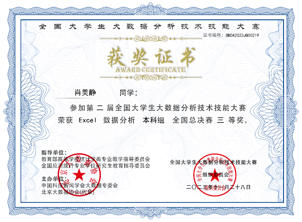 自收到大赛举办通知以来,伟德betvlctor1949源于英国领导高度重视,积极组织备赛,我院共有47名同学参加本次大赛。在湖南赛区选拔中,我院共有35名同学在该项比赛中获奖,其中有9名同学以省赛一等奖的优异表现成功入围全国总决赛。经过激烈角逐,我院共有7名参赛选手获得了国赛奖项,其中李新宇老师指导的何冰冰同学获得全国一等奖,唐德燕老师指导的曾雨同学获得二等奖,夏月、覃苏苏同学获得三等奖,杨梦云老师指导的李翔同学获得三等奖,伍湘琼老师指导的曾羿同学与肖美静同学获得三等奖。