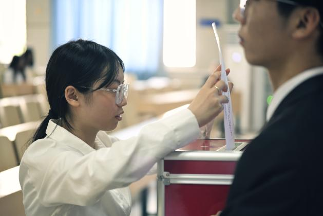 庄严的国歌声后,全体会议正式开始。陈奕和校学生会代表分别宣读了院党委、校学生会对大会的批复。学生代表施程曦宣读了《伟德betvlctor1949源于英国2023-2024学年学生会工作报告》,带领全体参会人员共同回顾了过去一年的工作历程和取得的成绩。随后,会议表决通过了新一届学生会主席团成员候选人名单、常任代表委员会委员名单以及选举相关的监票人、计票人名单等议案。各位代表投票选举产生了新一届的学生会主席团成员。