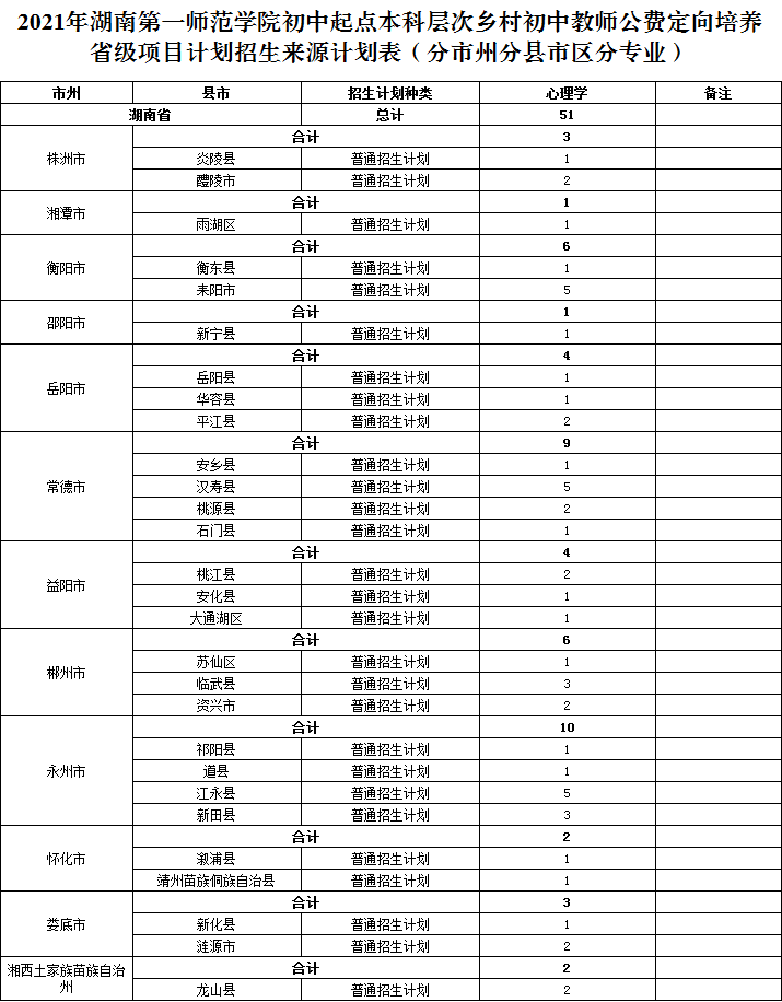 附件1 2021年伟德国际1949初中起点本科层次乡村初中教师公费定向培养省级项目计划招生来源计划表(分市州分县市区分专业).png