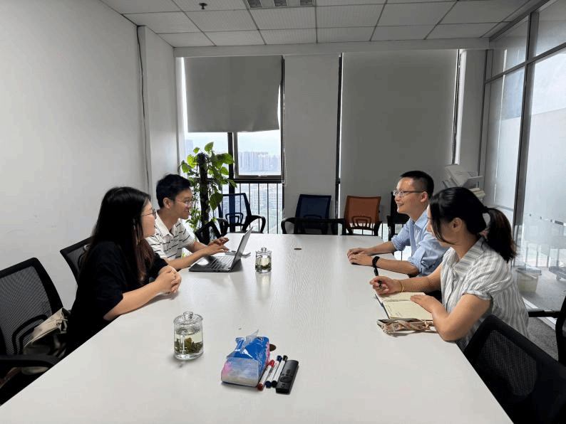 能川工作人员陈圣良对学院一行到访表示热烈欢迎,并详细介绍了企业在技术研发、人才需求等方面的情况。她提到,能川高度重视与我院合作,期待通过交流,构建更紧密的人才共育、科研协同机制,实现互利共赢。叶君炎介绍了计科系的师资情况,希望精准对接企业需求,为学生拓展实习渠道,同时在科研攻关、成果转化等方面建立合作。
